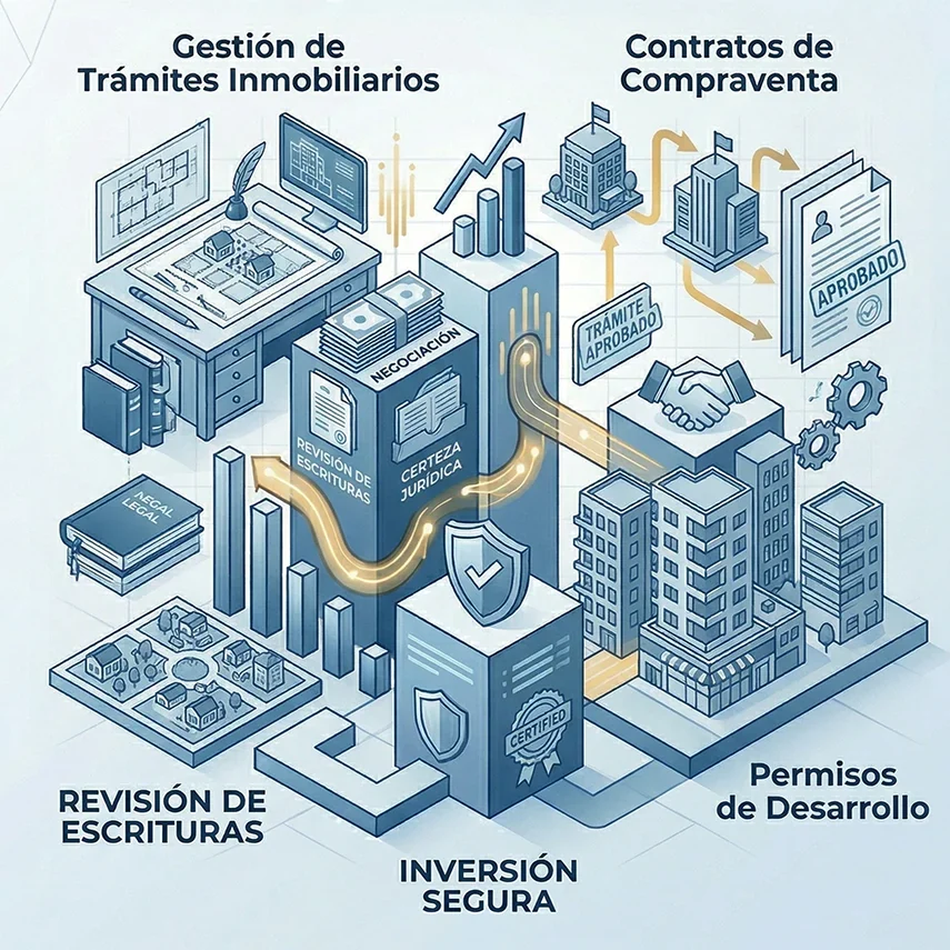 Certeza jurídica en tus inversiones. Negociación, revisión legal de escrituras, contratos de compraventa y gestión de trámites inmobiliarios para desarrollos y particulares.
