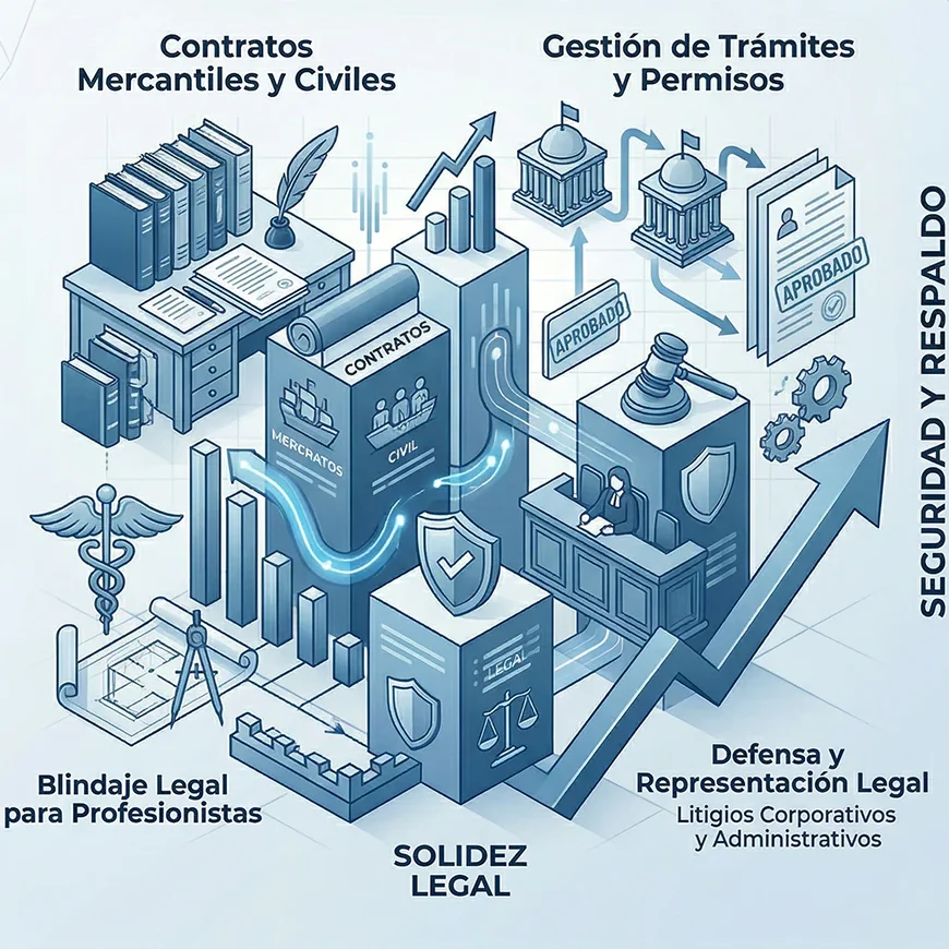 Especialistas en redacción y revisión de contratos mercantiles y civiles. Gestión de trámites de gobierno y permisos. Ofrecemos blindaje legal para profesionistas (médicos, arquitectos) y defensa y representación legal ante litigios corporativos y administrativos.